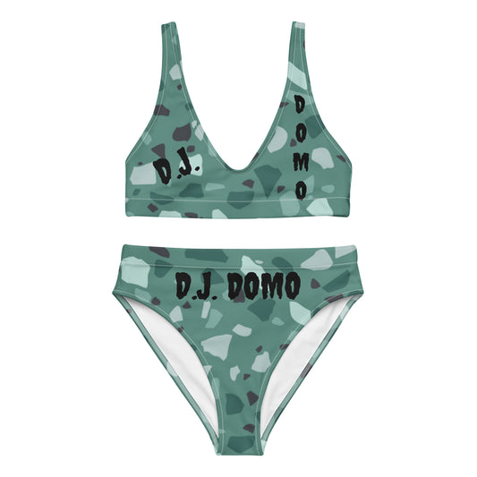 D.J. Domo "Green Shapes" 2 Piece High-Waisted Bikini Swimsuit