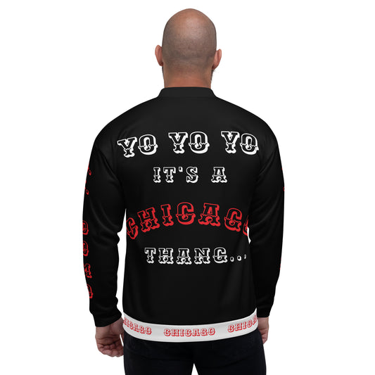 DJD IL- "It's A Chicago Thang" Unisex Bomber Jacket Black/Red/White
