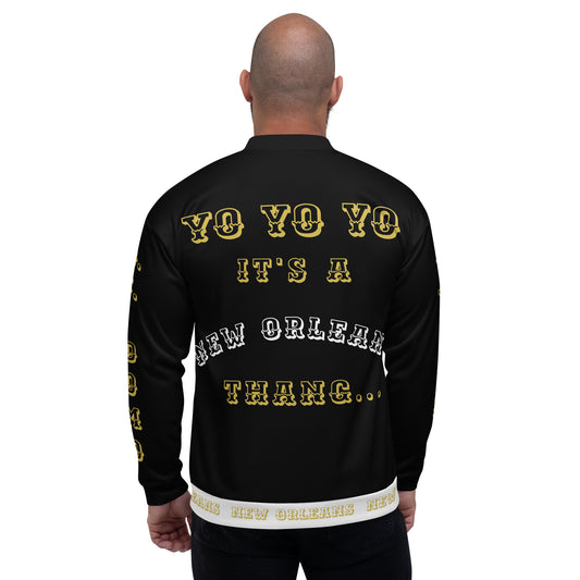 DJD LA- "It's A New Orleans Thang" Unisex Bomber Jacket Black/Old Gold/White