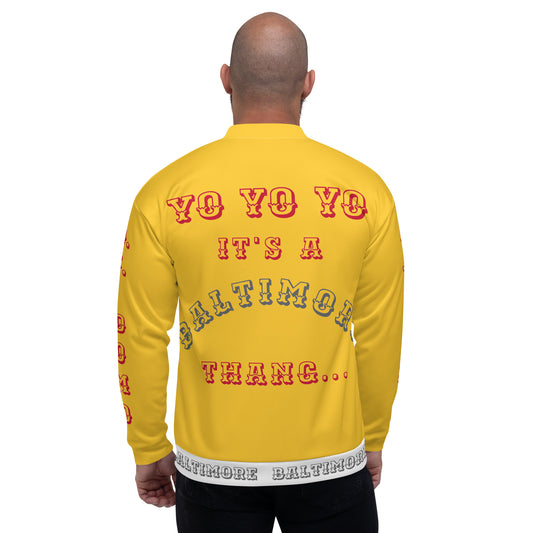 DJD MD- "It's A Baltimore Thang" Unisex Bomber Jacket Gold/Red/Gray