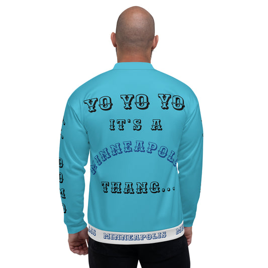 DJD MN- "It's A Minneapolis Thang" Unisex Bomber Jacket Turquoise/Black/Blue