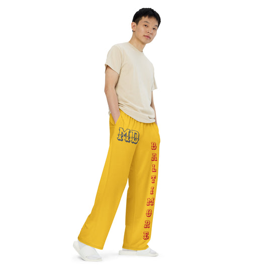DJD MD- "It's A Baltimore Thang" Unisex Wide-Leg Pants Gold/Red/Grey