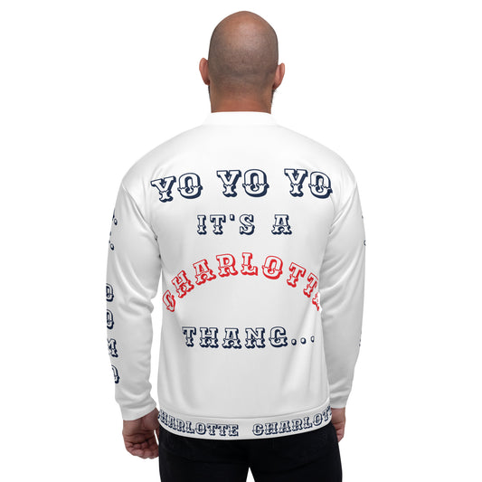 DJD NC- "It's A Charlotte Thang" Unisex Bomber Jacket White/Navy