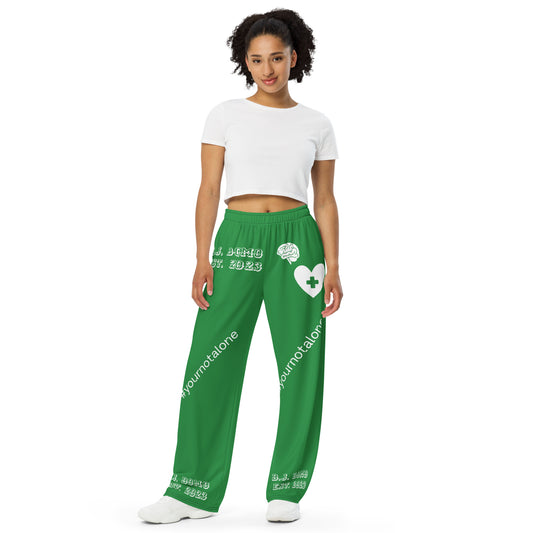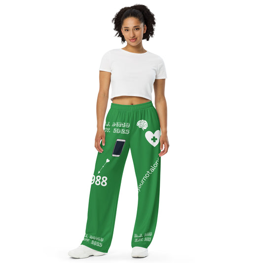 D.J. Domo "Mental Health yournotalone" Unisex Wide-Leg Pants Green/White