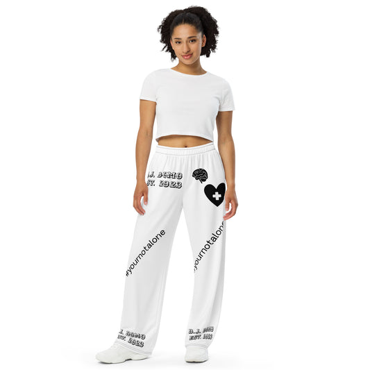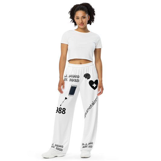 D.J. Domo "Mental Health yournotalone" Unisex Wide-Leg Pants White/Black