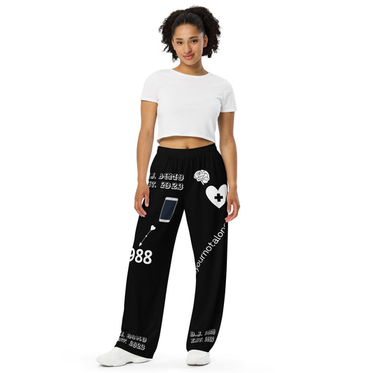 D.J. Domo "Mental Health yournotalone" Unisex Wide-Leg Pants Black/White