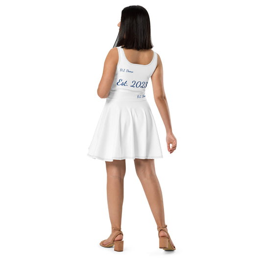 D.J. Domo "Cursive" Skater Dress White/Blue