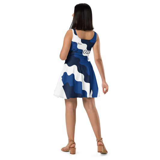 D.J. Domo "Fatigue Cursive" Skater Dress Blue/Black/White