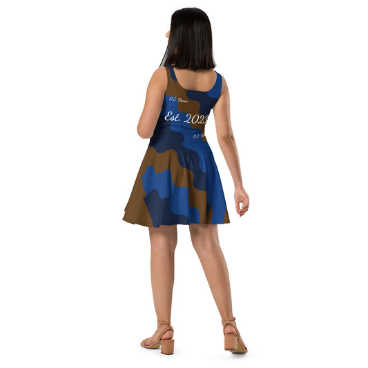 D.J. Domo "Fatigue Cursive" Skater Dress Brown/Blue/White