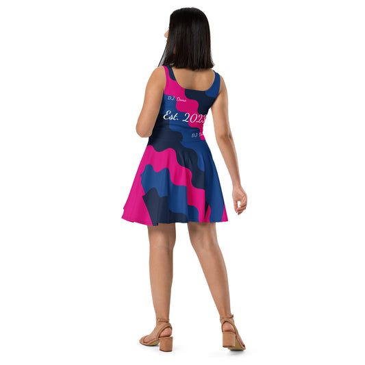 D.J. Domo "Fatigue Cursive" Skater Dress Pink/Blue/White