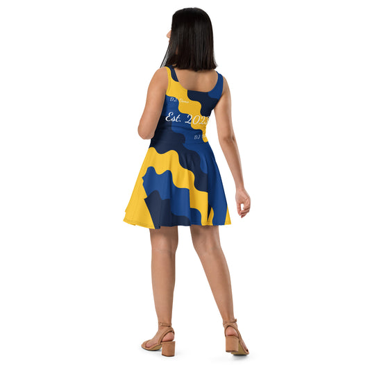 D.J. Domo "Fatigue Cursive" Skater Dress Gold/Blue/White