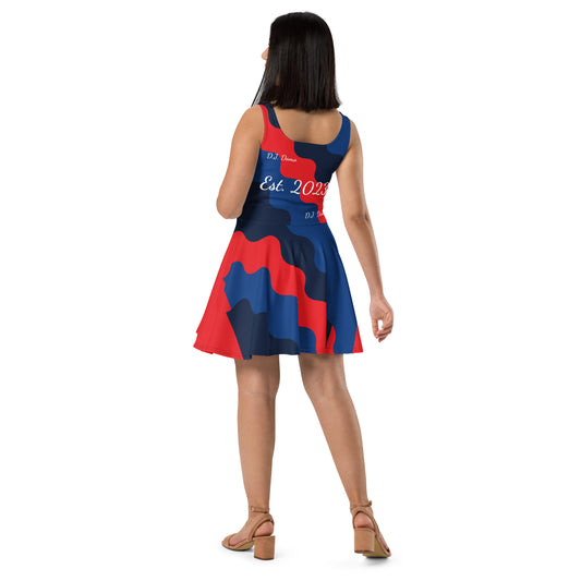 D.J. Domo "Cursive" Skater Dress Red/Blue