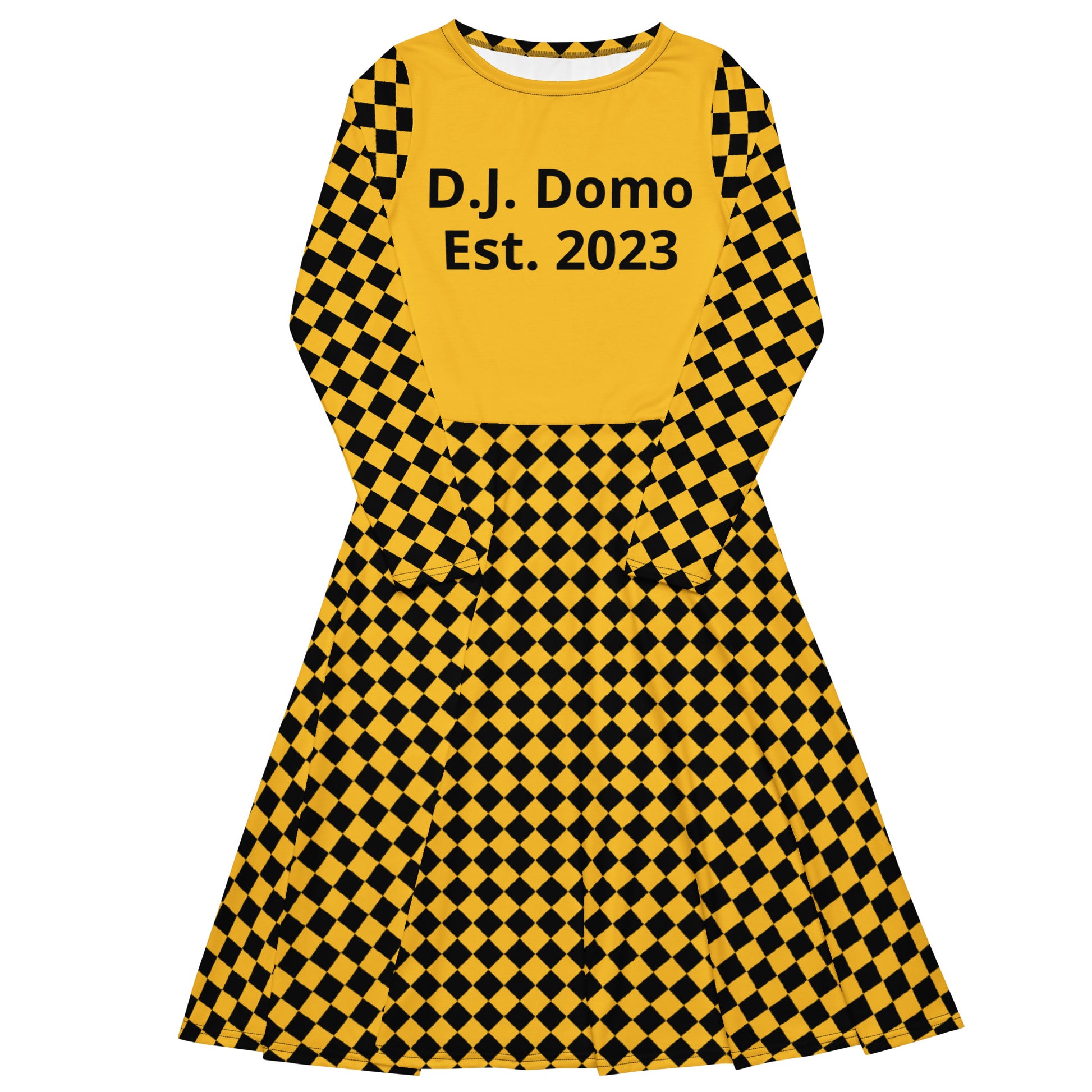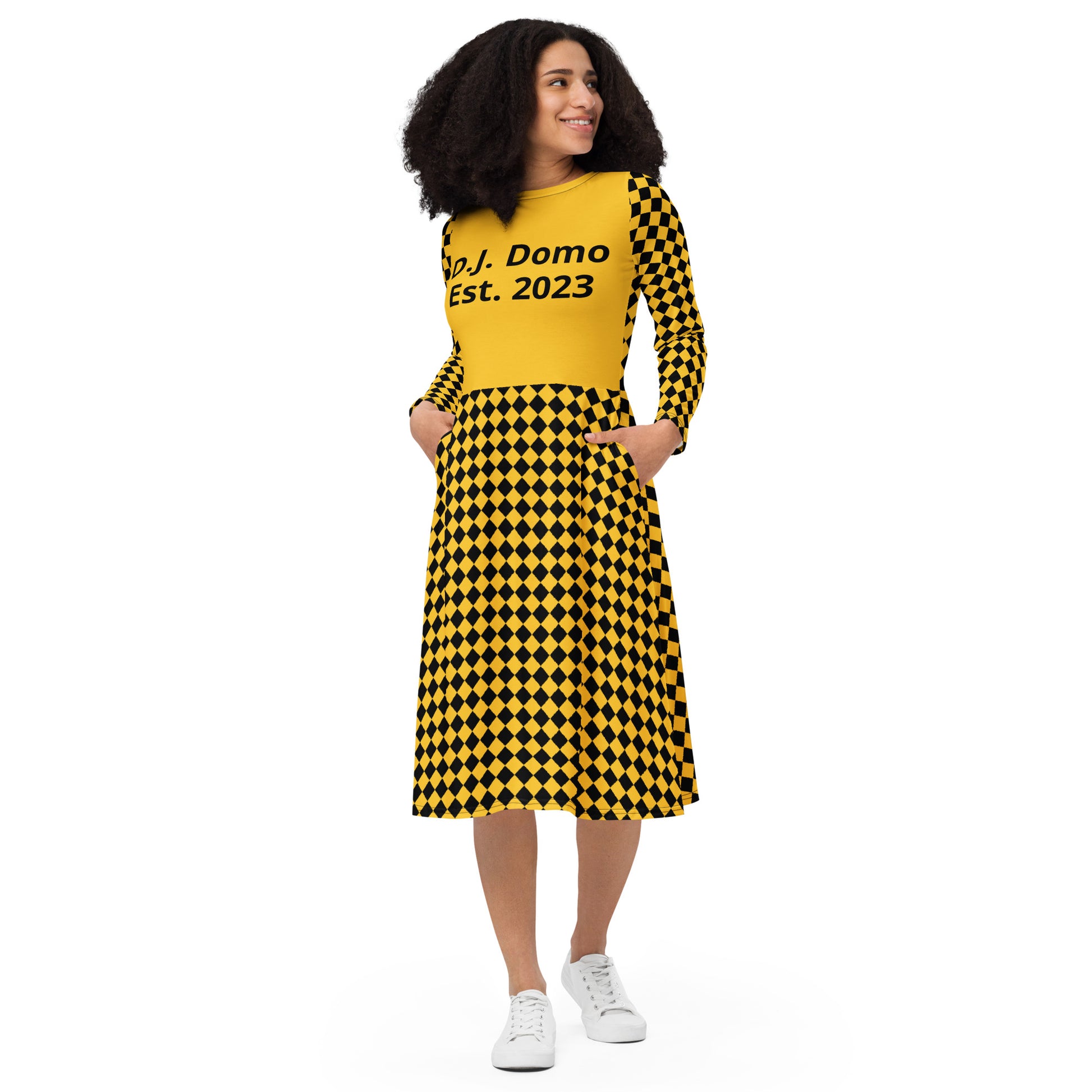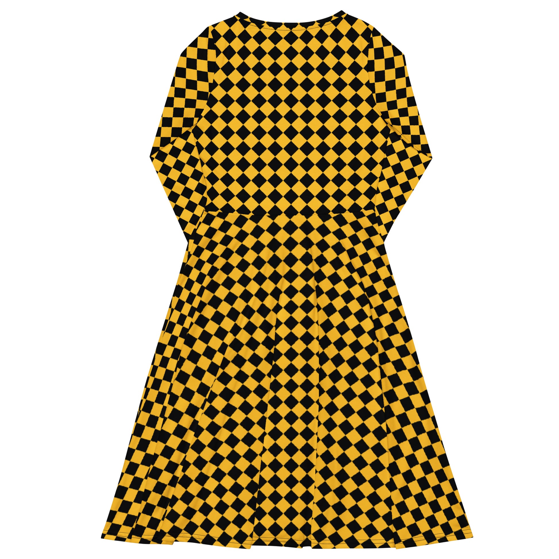D.J. Domo "Checkered1" Long Sleeve Midi Dress Gold/Black