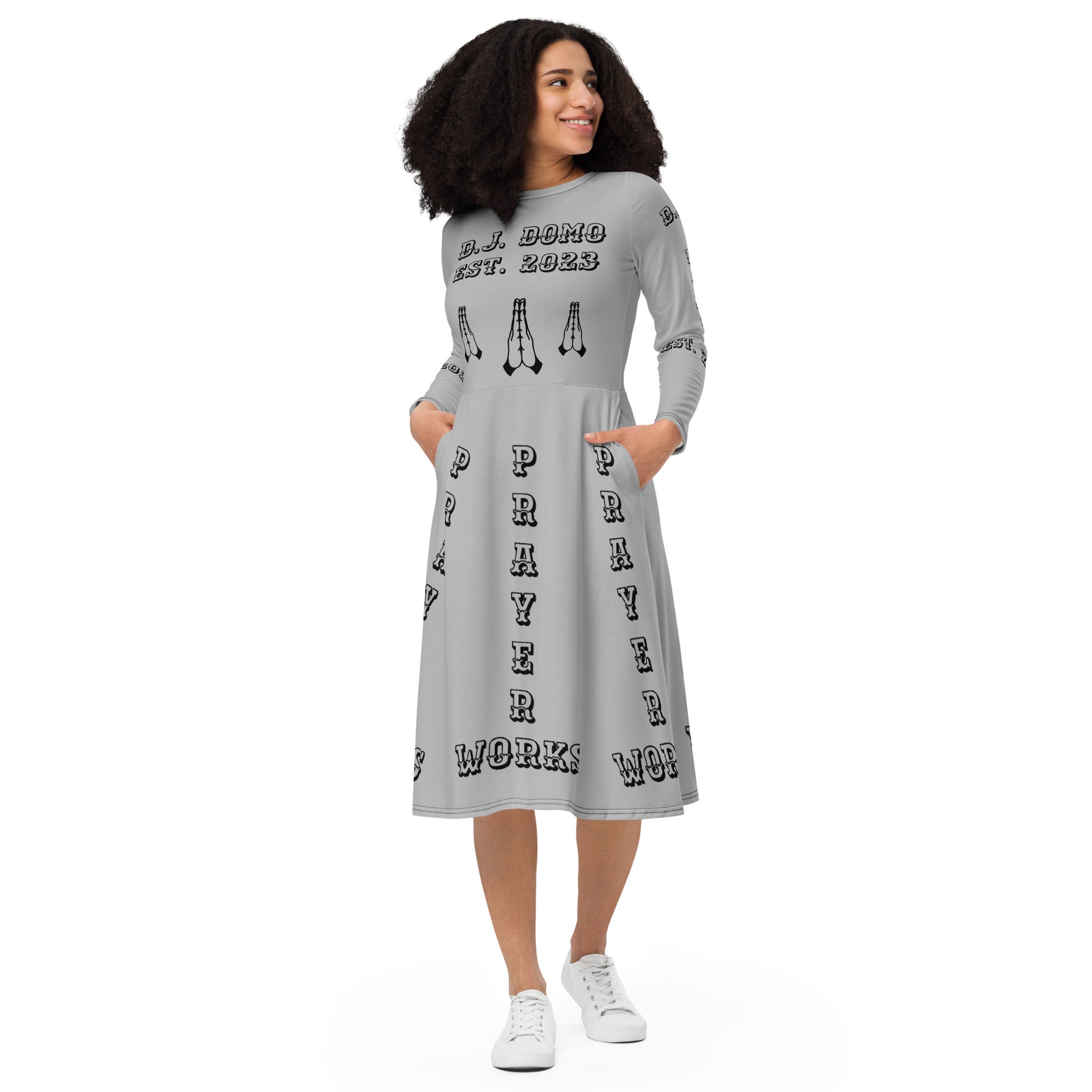 D.J. Domo "Prayer Works Font2" Midi Dress Gray/Black