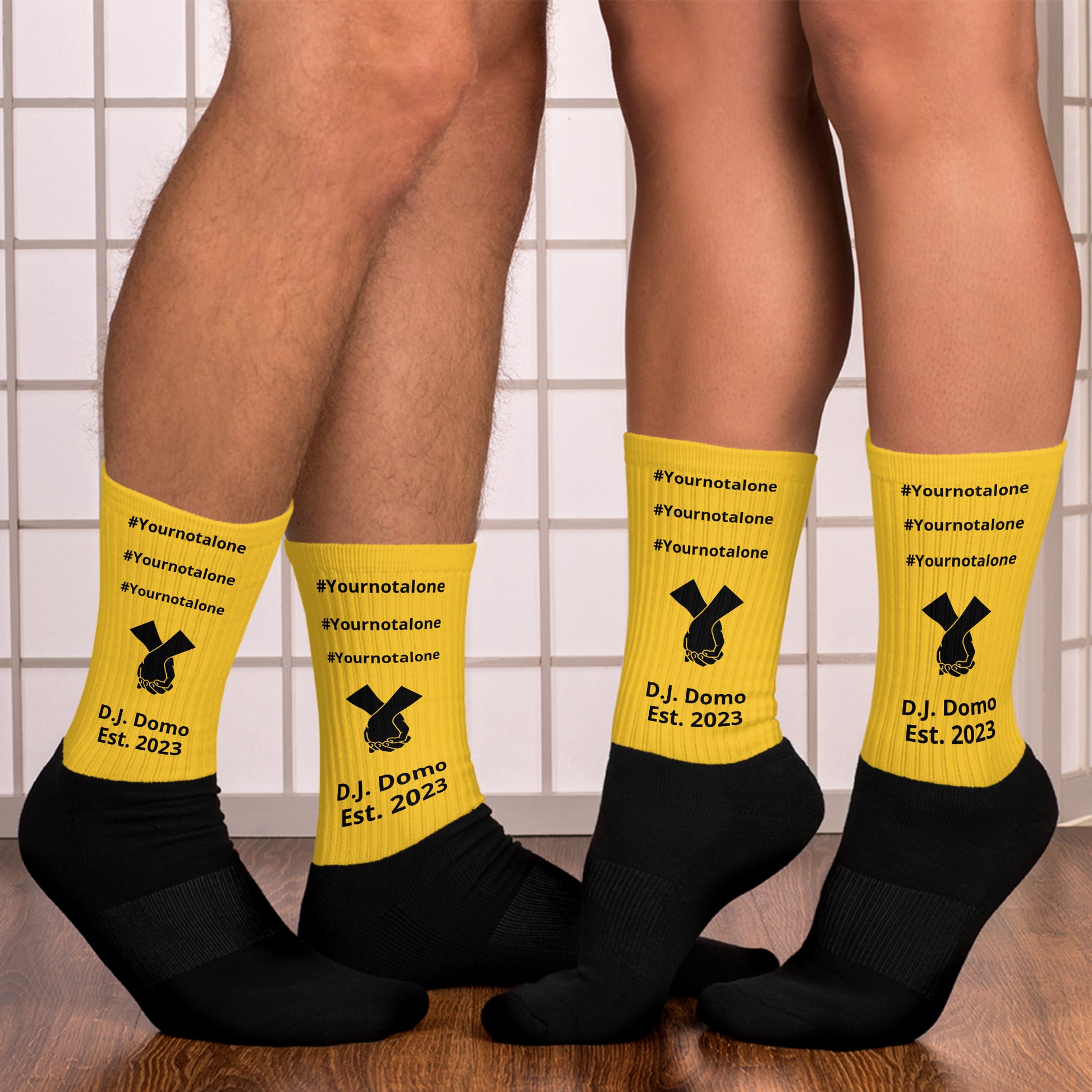These socks are extra comfortable thanks to their cushioned bottom. The foot is black with artwork printed along the leg with crisp, bold colors that won't fade.
